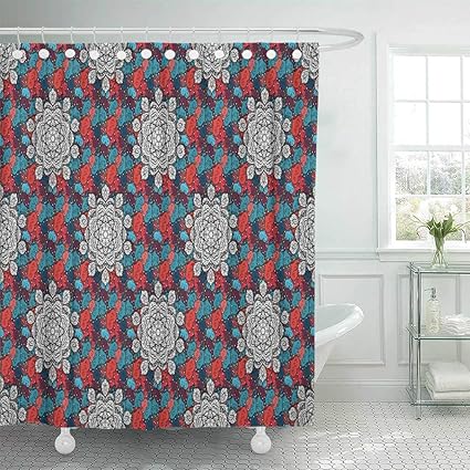 Us 17 34 35 Off Shower Curtain Indian Floral Paisley Medallion Pattern Ethnic Mandala Henna Tattoo Style Coloring Book Bathroom Decor In Shower