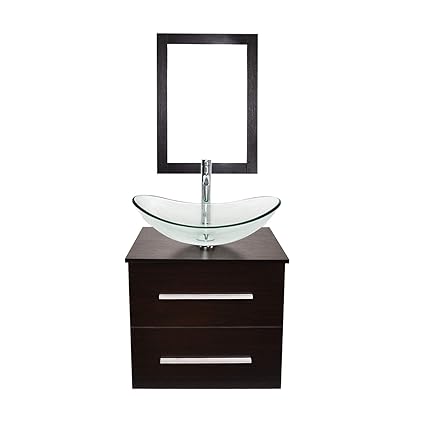 Wood Wall Mounted Bathroom Vanity 24 Inch Floating Cabinet With Vessel Sink And Mirror Hanging Bathroom Cabinet